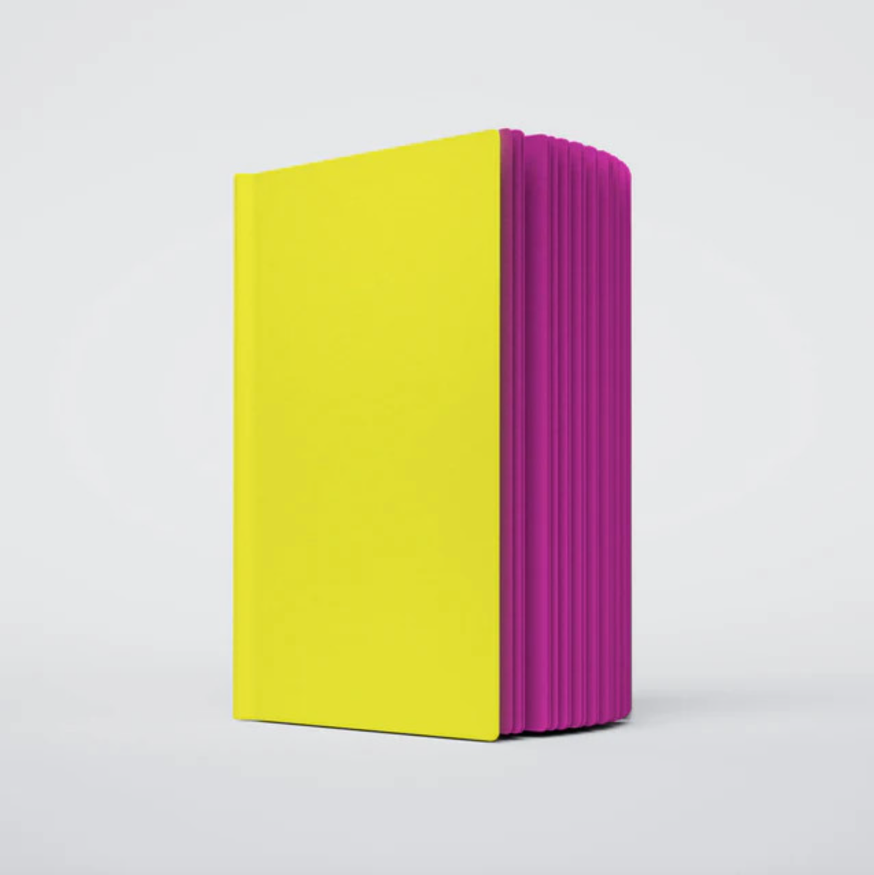 No.1 Tall “Razzle Dazzle” Uglybook, standing 5.75” tall and 4" wide with a factory yellow cover and fuchsia pink interior pages. Made right here in the USA.