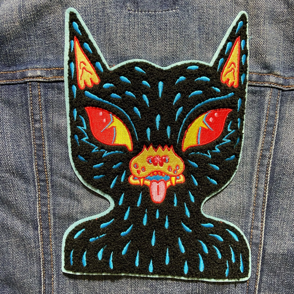Me-OW! Check out this incredible oversized patch by artist Tripper Dungan! Imagine how cool you'll look sporting this on the back of your denim jacket. A cool cat - if you will.