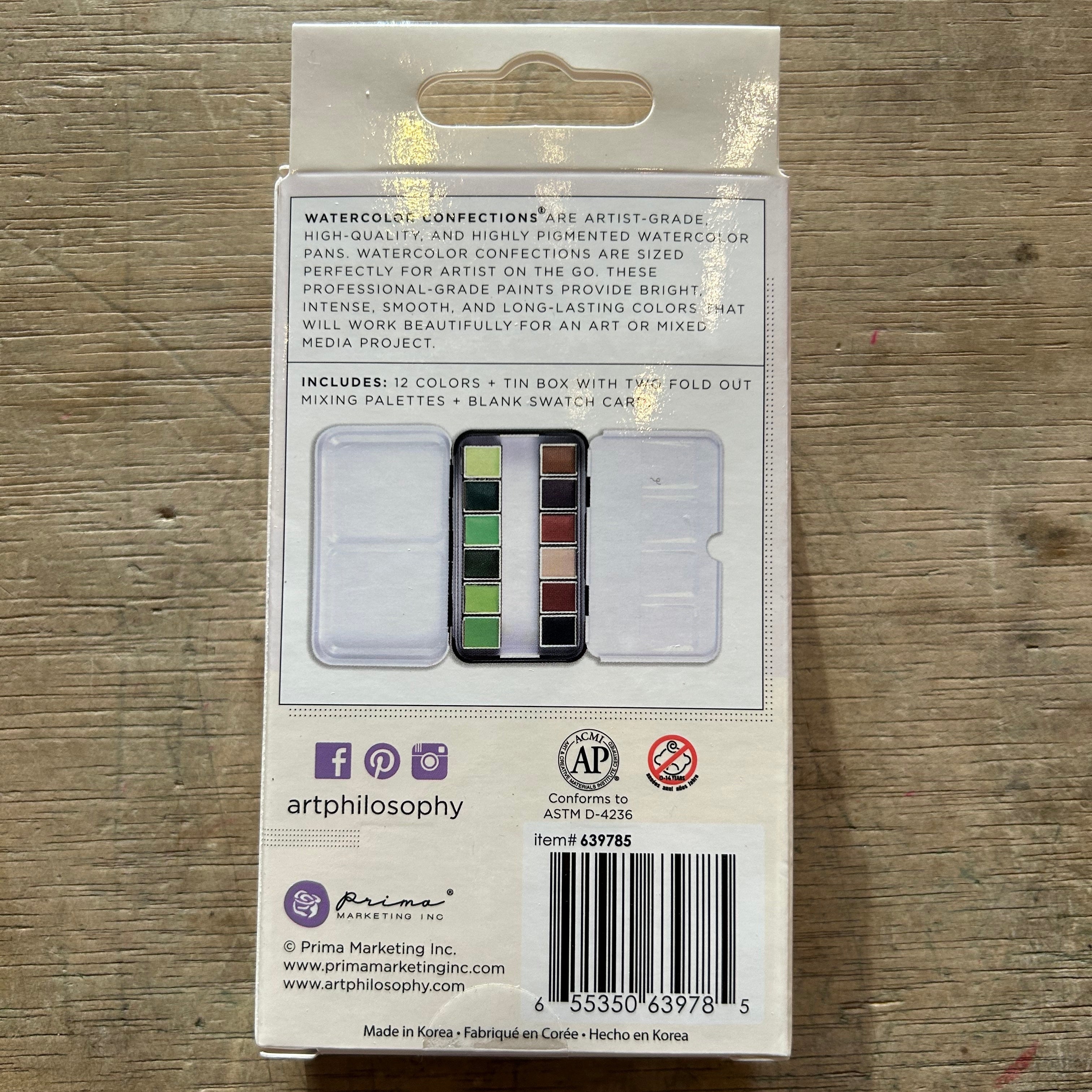 Watercolor Confections are artist-grade, high quality, and highly pigmented watercolor pans. Watercolor Confections are sized perfectly for artists on the go. These professional-grade paints provide bright, intense, smooth and long-lasting colors that will work beautifully for any art or mixed-media project.