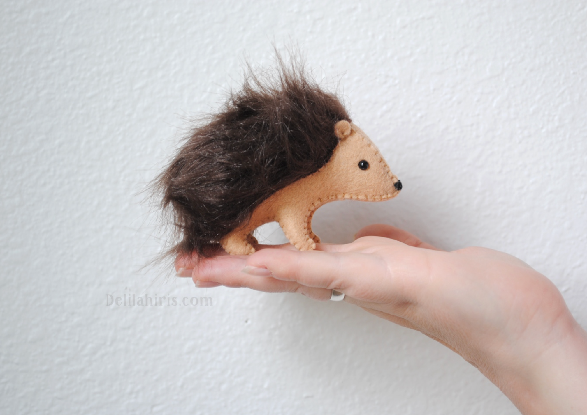 The finished fuzzy hedgehog stands approximately 3 inches tall and four inches long. A perfect pocket pet, kid’s room decoration, or gift the kit itself as a gift to your favorite crafty friend.
