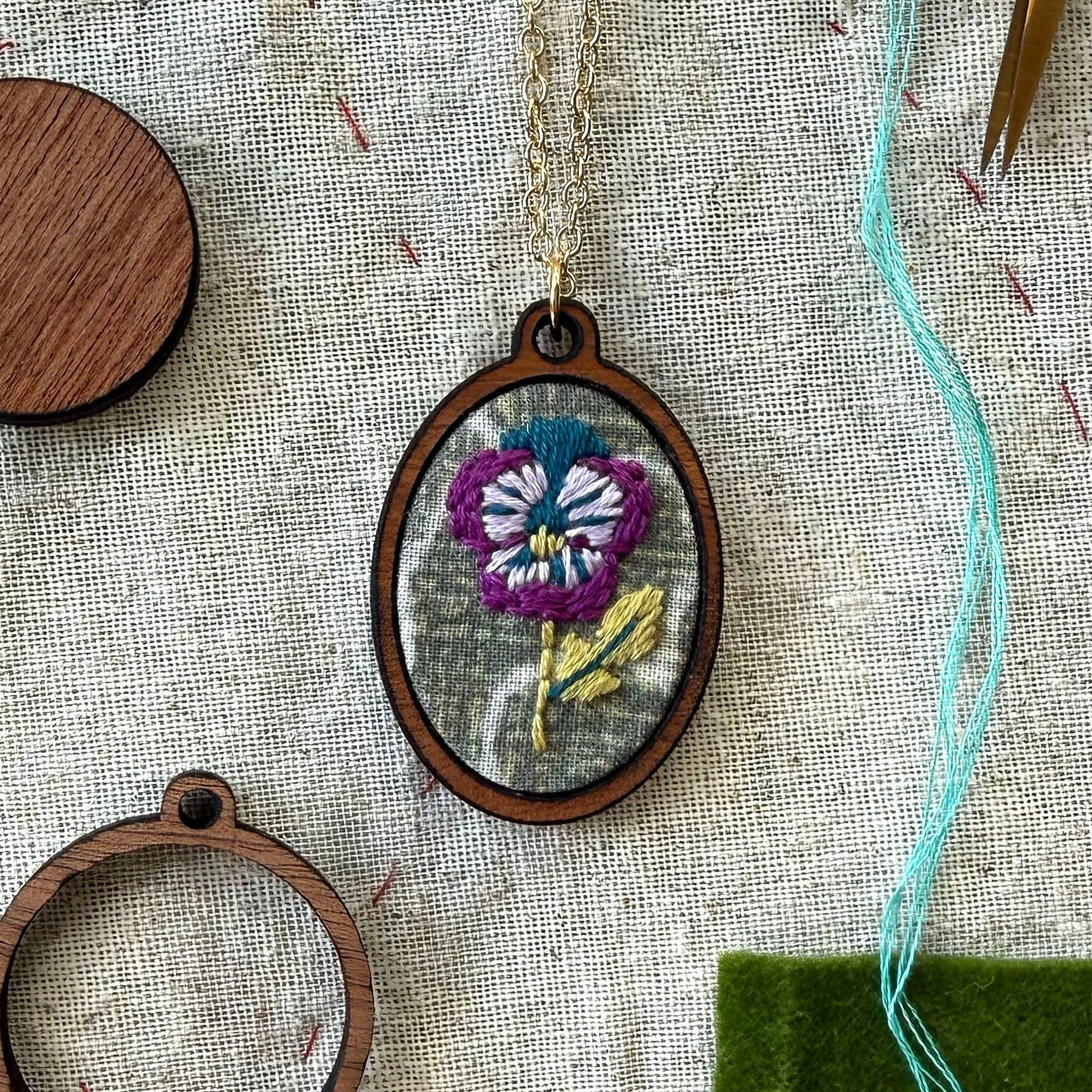 This embroidery kit from Rikrack comes with everything you need to make this beautiful and unique piece of jewelry. A perfect project for beginners and beyond.