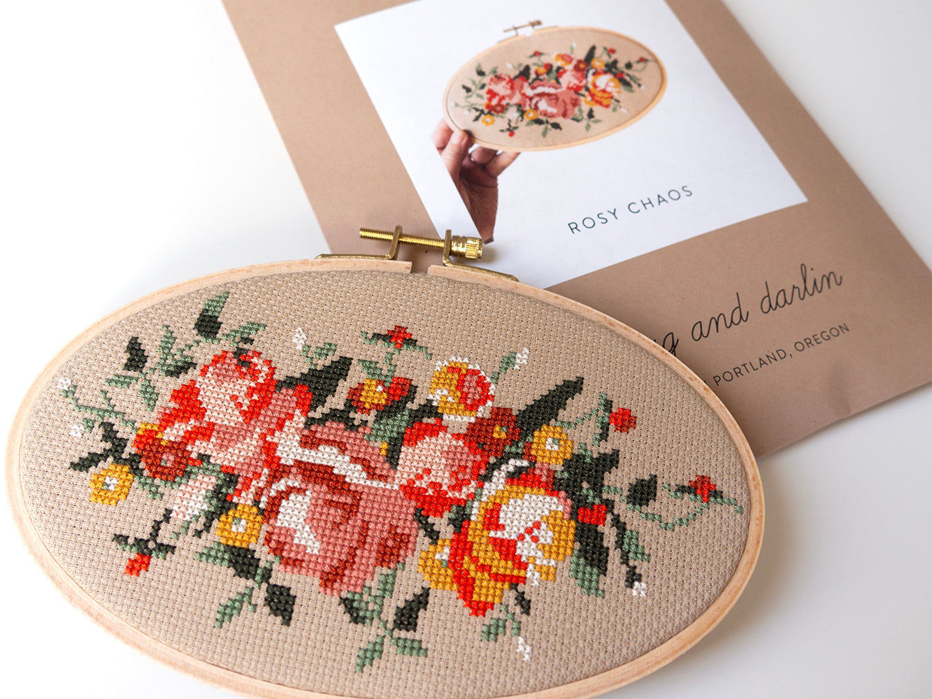 Enhance your home decor with our Rosy Chaos Kit. Featuring a stunning array of pink and red hues, this intermediate-level stitching project is sure to add a touch of elegance to any gallery wall. All supplies are included, making it the perfect kit for any stitching enthusiast.