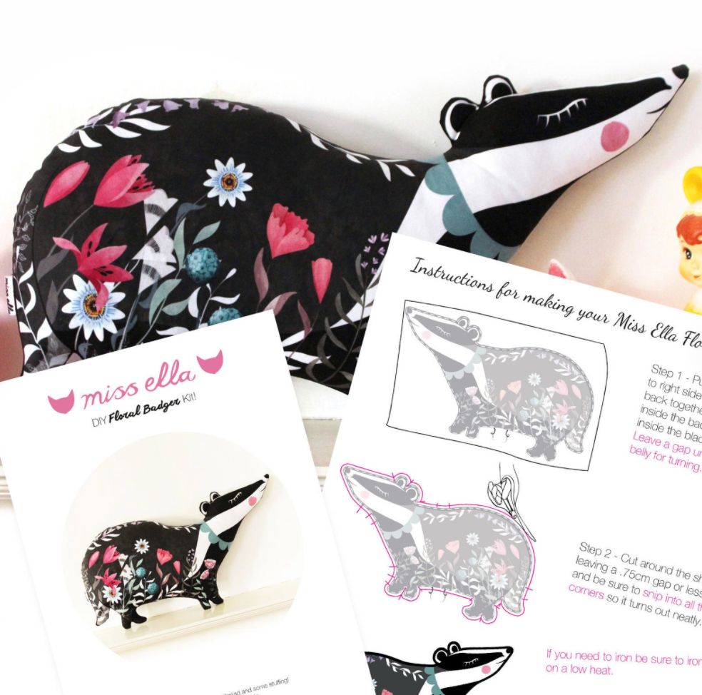 Badger cushion softie DIY KIT by Miss Ella *please note this is a kit you make yourself!*
