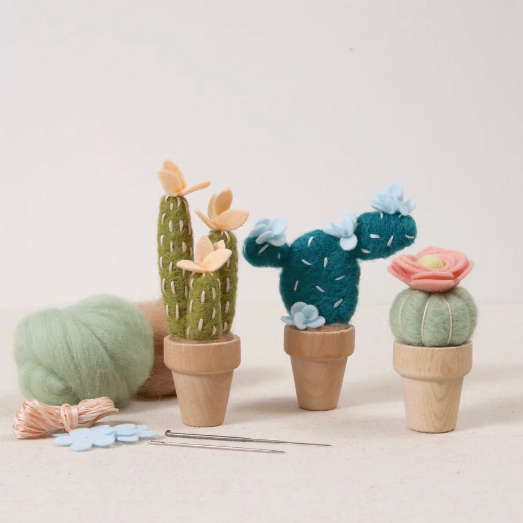 It's dry in the mojave; but this little desert plant is super juicy. Our peach mojave needle felting kit includes all the supplies to make your own cactus -- needles, foam, roving, felt flowers, floss + a teeny tiny flower pot. A helpful instruction sheet includes step by step instructions that even a beginner can use!