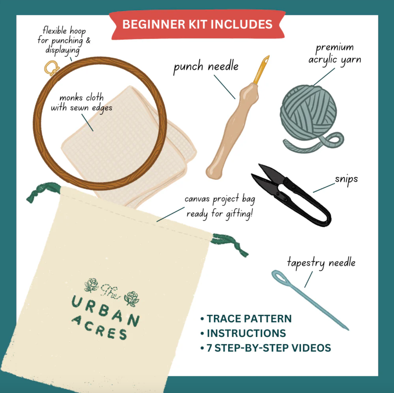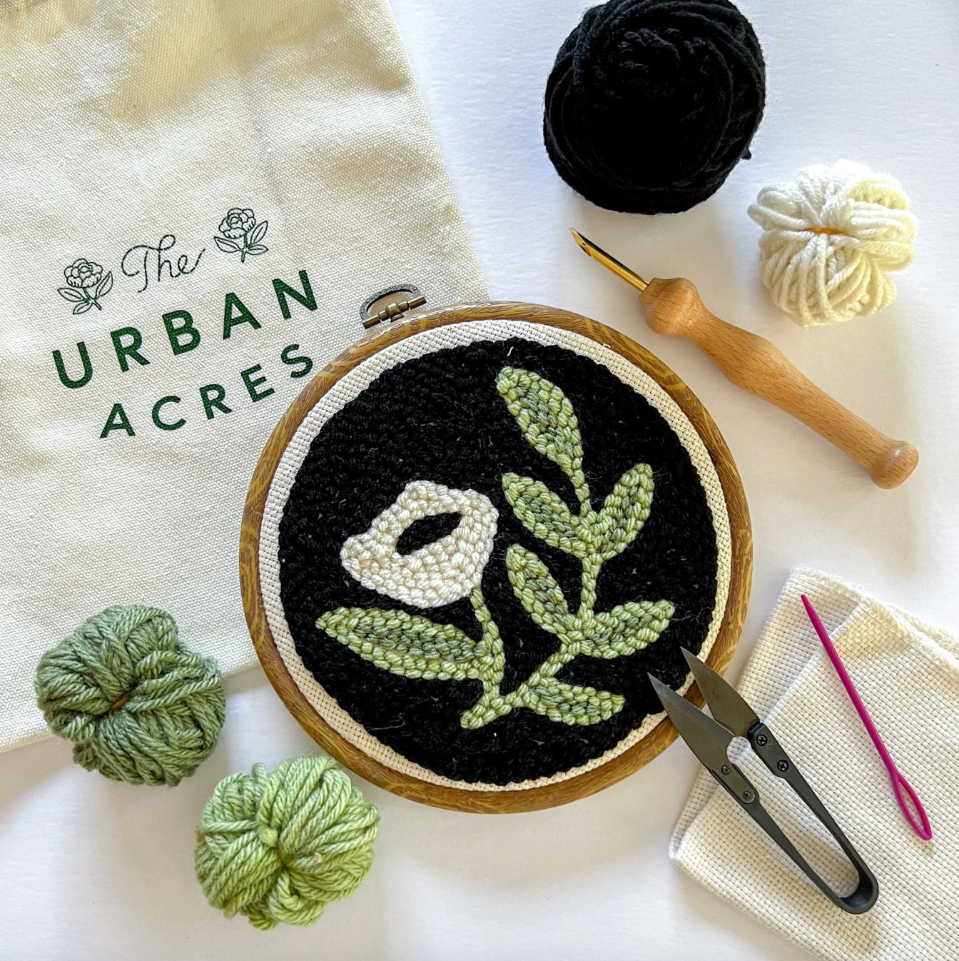 Learn how to create this lovely floral punch needle art with this beginner's kit from Urban Acres.