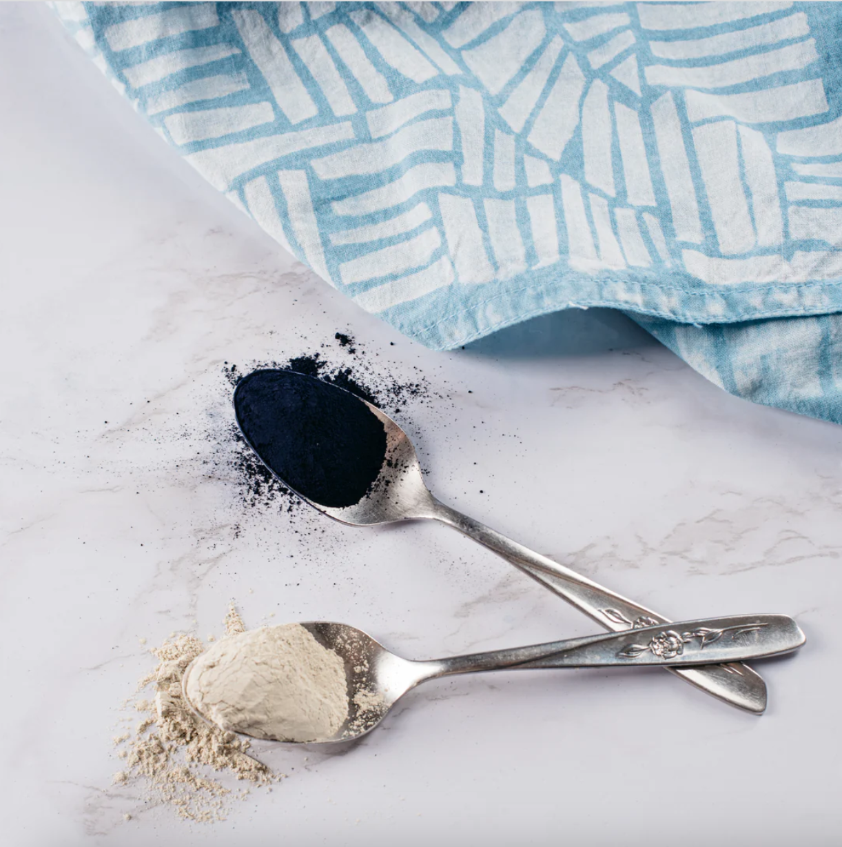 Batik’s cooler, easier cousin - you create a clay paste which you can apply to fabric or garment and it acts as a resist to the dye. But unlike batik, there is no hot or messy wax to deal with, and when you’re finished dyeing, you simply rinse the clay paste off with water. Uniquely formulated to work with indigo only, this kit is best purchased alongside the indigo kit. The paste can be applied freehand, with stencils, blocks and more, and can be used on fabric, garments and home goods. Complete with detailed instructions aimed at an absolute beginner. Packaged in a sturdy, recyclable kraft paper box which has been silk screened by hand.