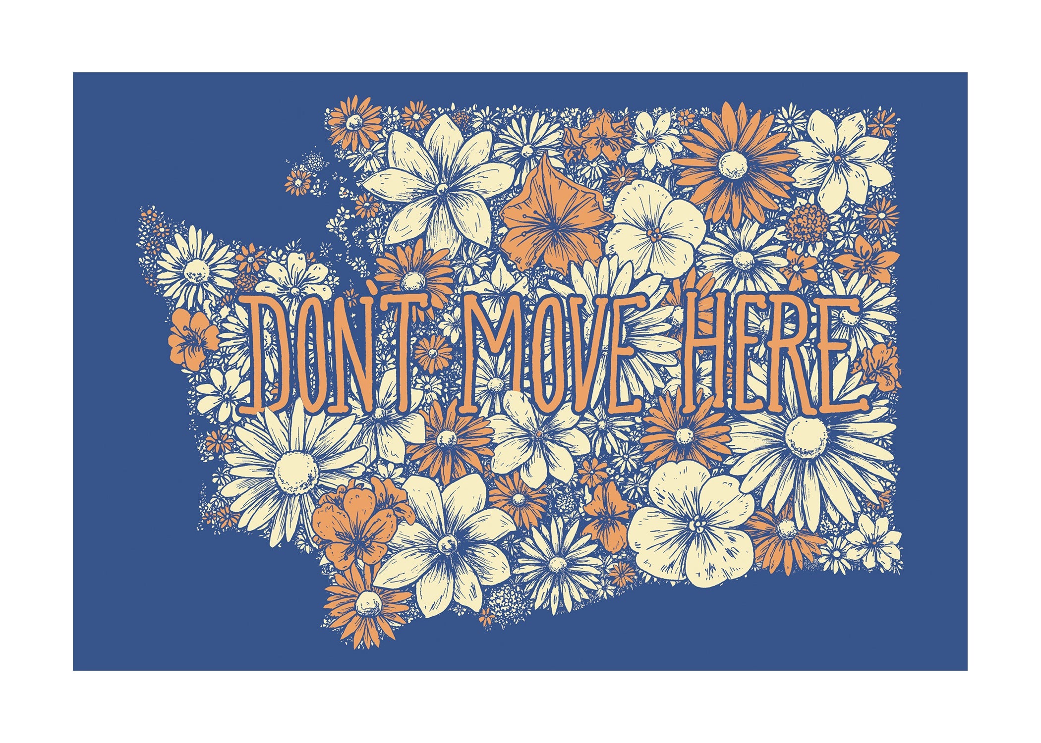At first glance it just looks like a really pretty floral version of Washington State. But then, if you look closer, you see that the flowers spell out, "Don't Move Here." And we mean it. If you visit, you're gonna want to immediately move here - but you know what - enough people have already done that. Stay home.