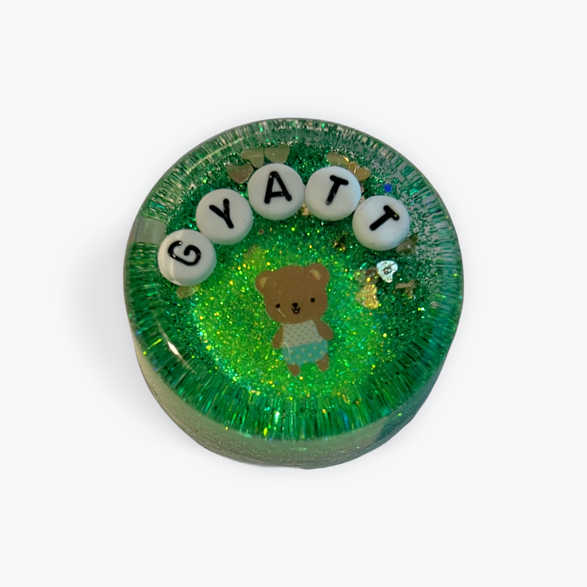 These Shower Art pieces are approximately 1.5" in diameter and 0.25" - 0.75" thick. There is a suction cup on the back for you to stick in your shower, on your mirror, refrigerator. It will stick on any hard, flat, smooth surface.