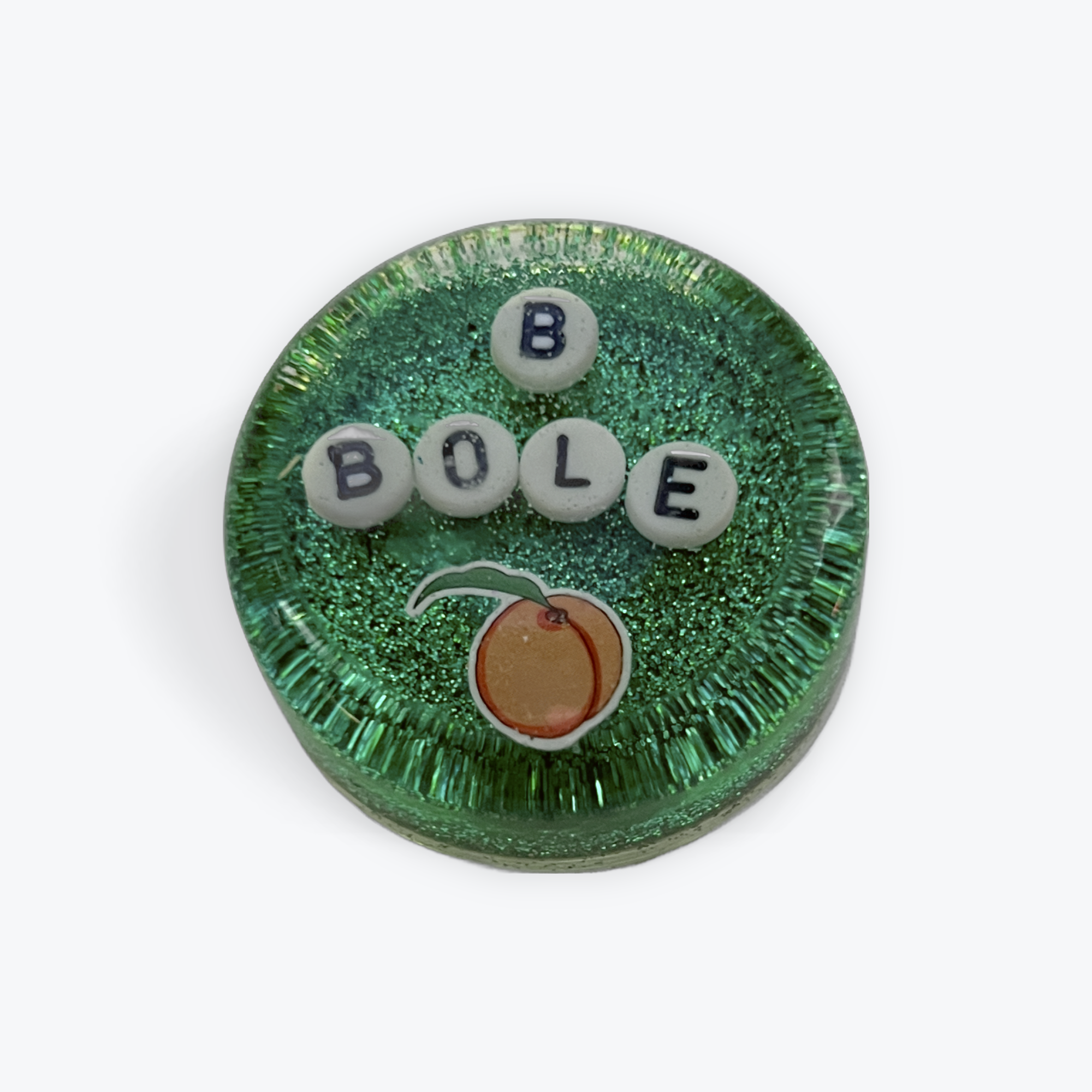These Shower Art pieces are approximately 1.5" in diameter and 0.25" - 0.75" thick. There is a suction cup on the back for you to stick in your shower, on your mirror, refrigerator. It will stick on any hard, flat, smooth surface.