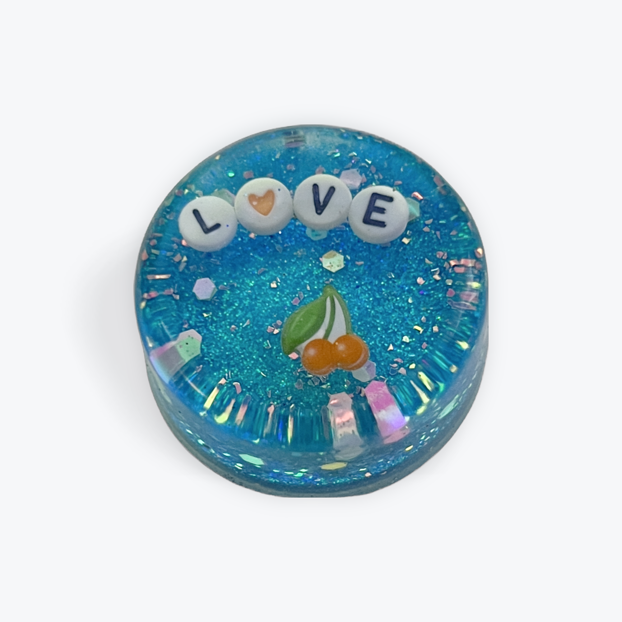 These Shower Art pieces are approximately 1.5" in diameter and 0.25" - 0.75" thick. There is a suction cup on the back for you to stick in your shower, on your mirror, refrigerator. It will stick on any hard, flat, smooth surface.
