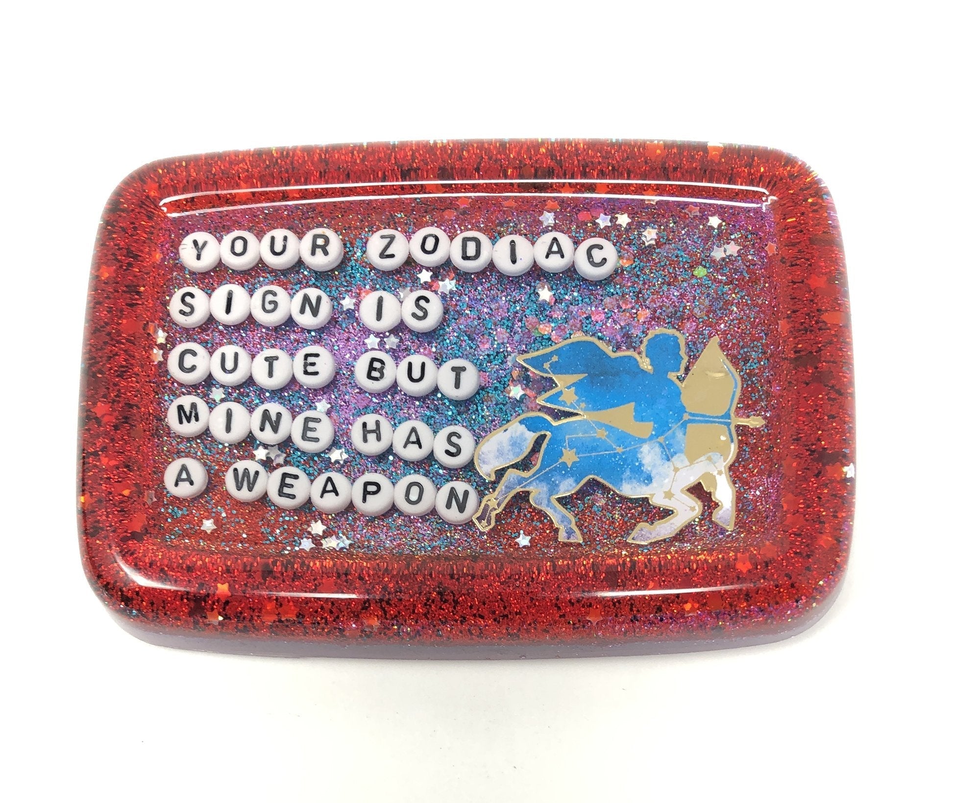 The seven we normally have on hand are: Capricorn, Pisces, Gemini, Sagittarius, Taurus, Leo, and Cancer. If you have some ideas for one of the other signs you want made, let us know and maybe we can make it happen!
